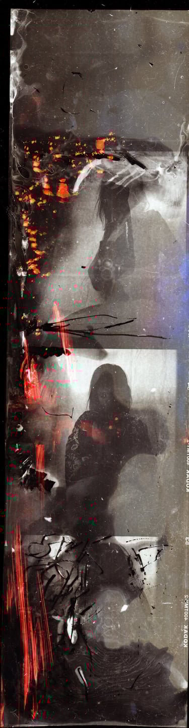 Queste pratiche intervengono direttamente sull’emulsione fotografica, considerata come superficie sensibile e instabile. Attraverso tecniche di emulsion lift su Polaroid e negativi, collage e processi di deterioramento controllato, l’immagine viene separata dal supporto originario, spostata o lasciata mutare nel tempo.